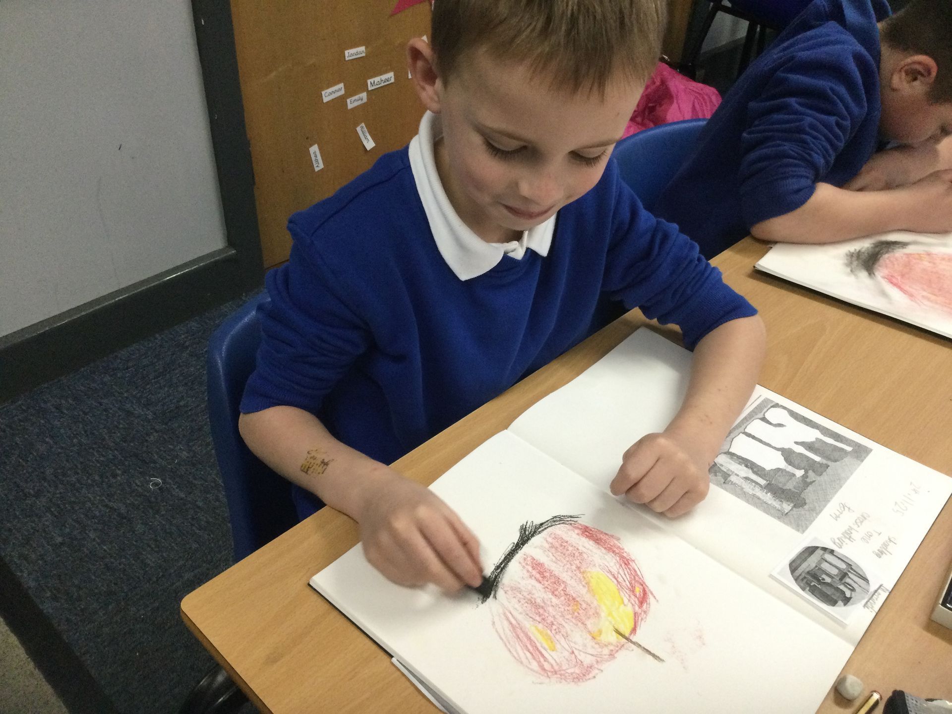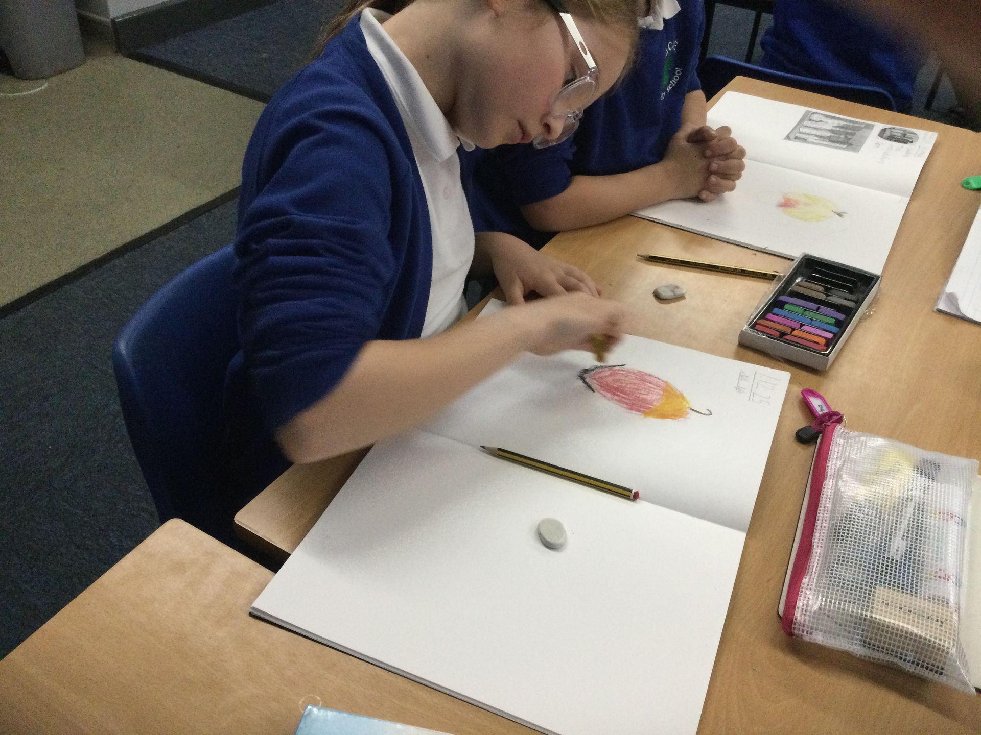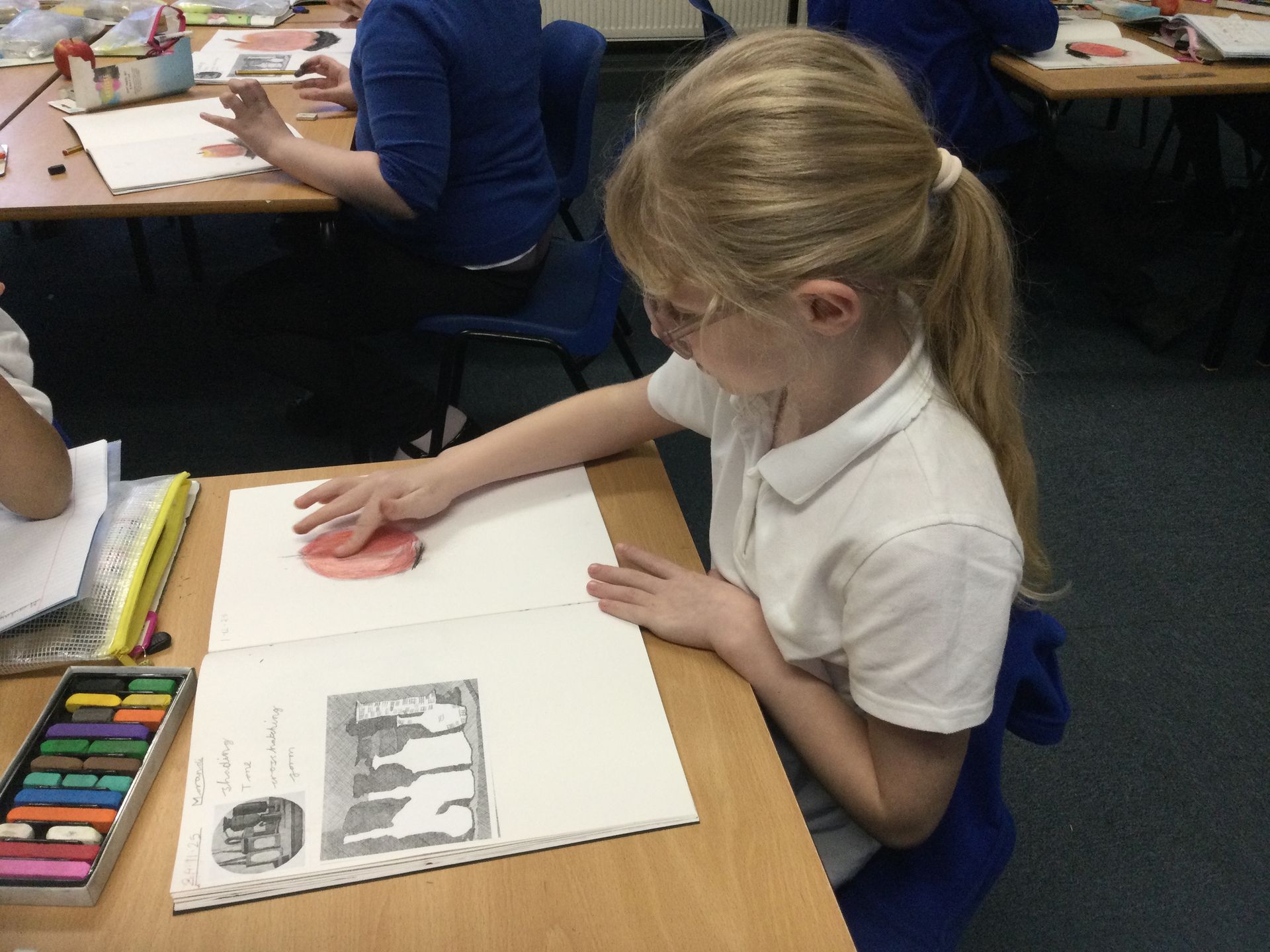 In Art, we sketched apples using chalks. We had the challenge of looking at the tone and shades in the apples to make them look realistic. Mrs Broda-Kaye was incredibly impressed by our artistic skills!