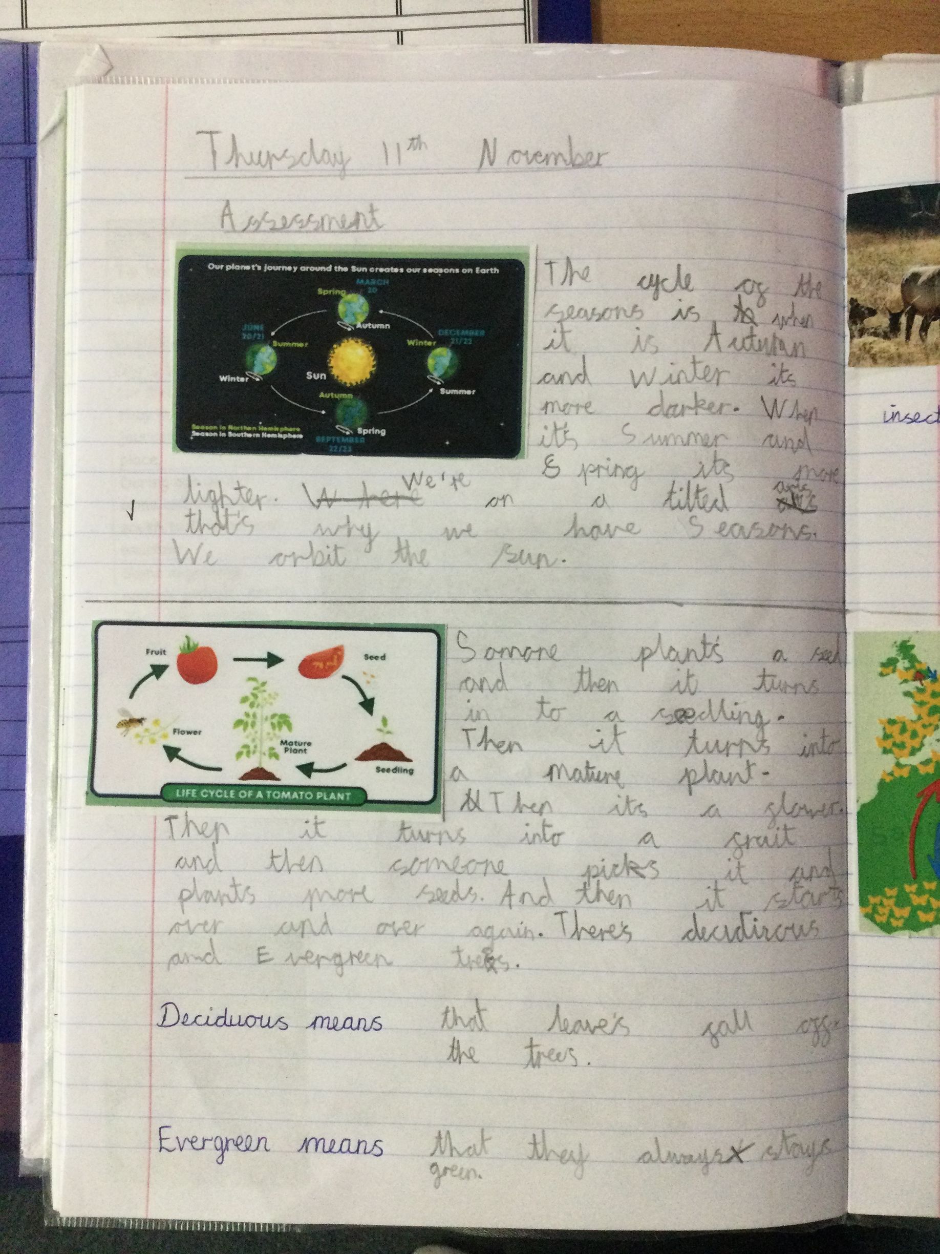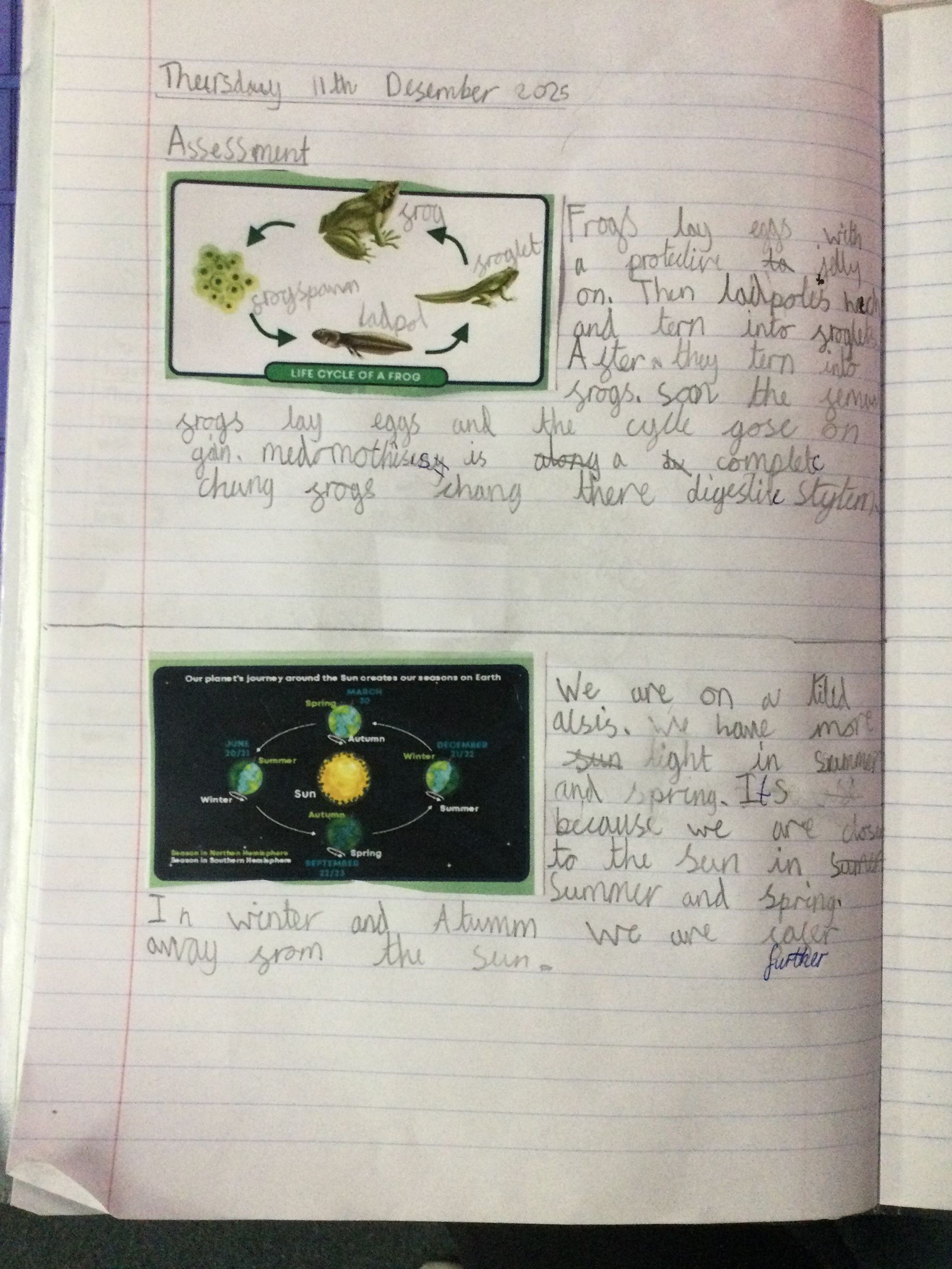 To finish our cycle unit, we completed a special assessment task. We divided our page into four sections and wrote about the four main cycles we’ve studied this term:
