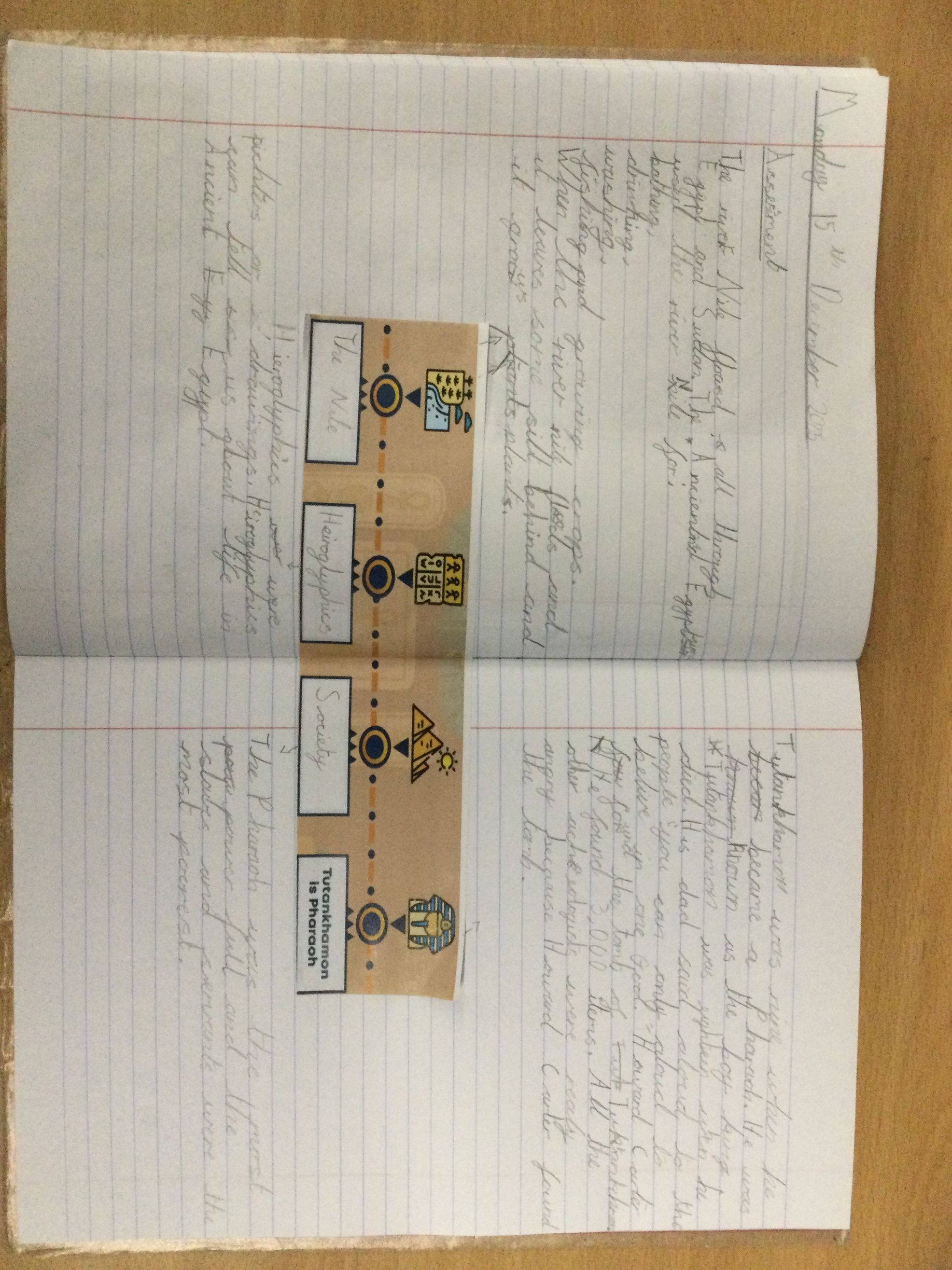 To conclude our Ancient Egyptians topic, we completed a timeline assessment. Mrs Broda-Kaye and Mrs Tinnon were amazed by how many facts we remembered, including hieroglyphics, Tutankhamun, the River Nile and Pharaohs! ðð