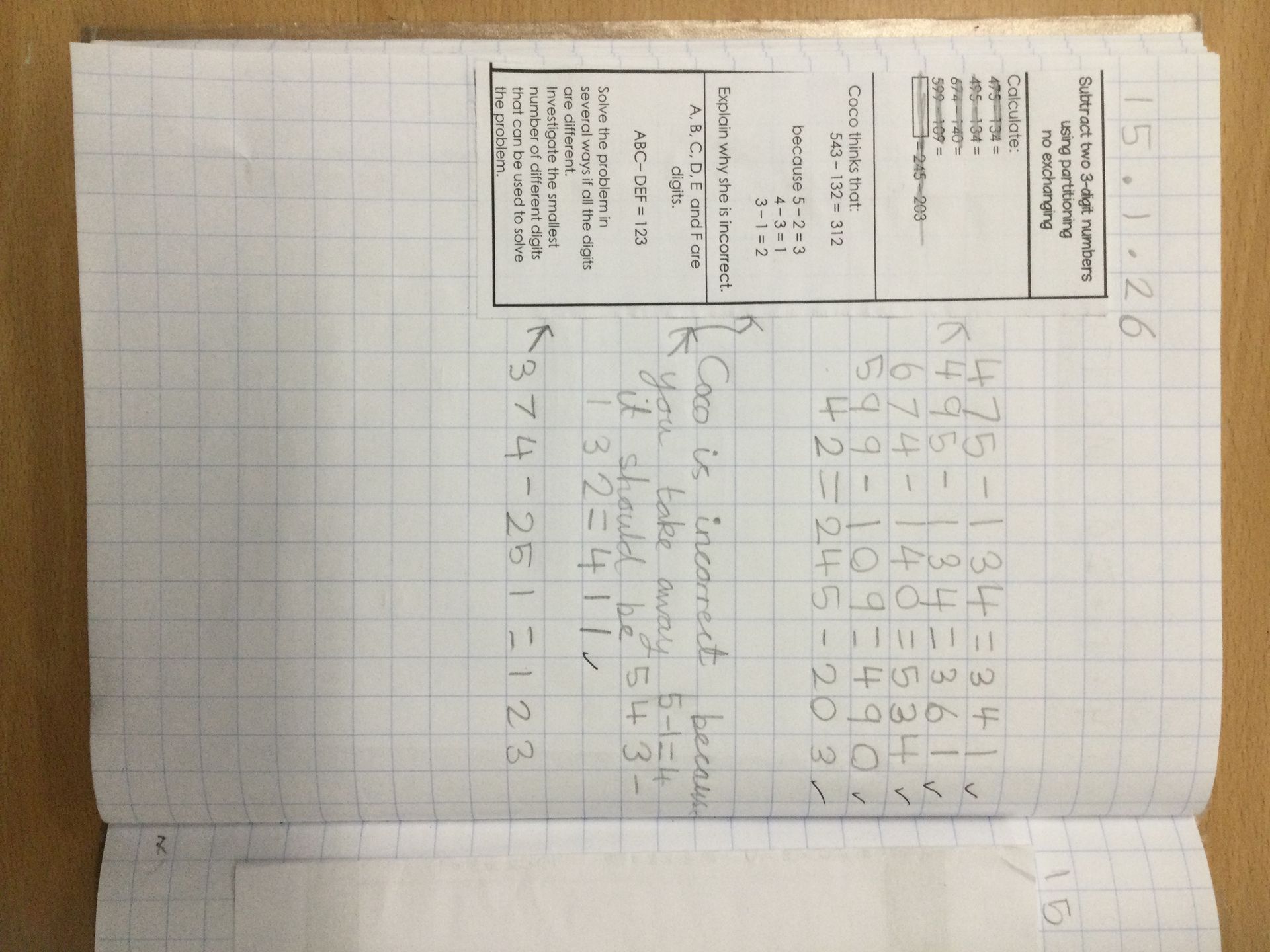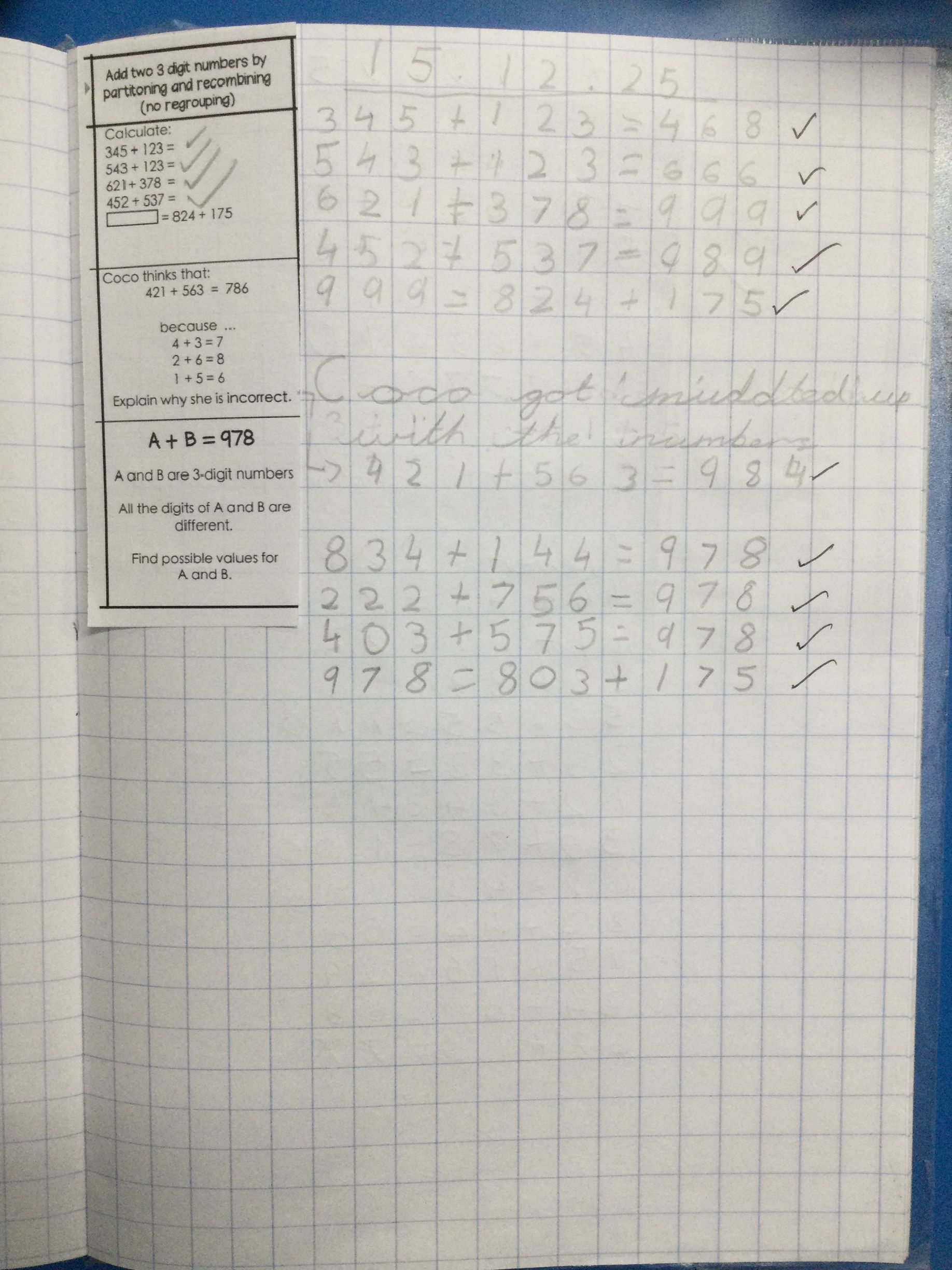 We learned how to add 99, 199, 299, and so on to 3-digit numbers. First, we added the nearest 100 and then subtracted one. Using practical equipment helped us understand the method, and soon we were solving them mentally like pros!