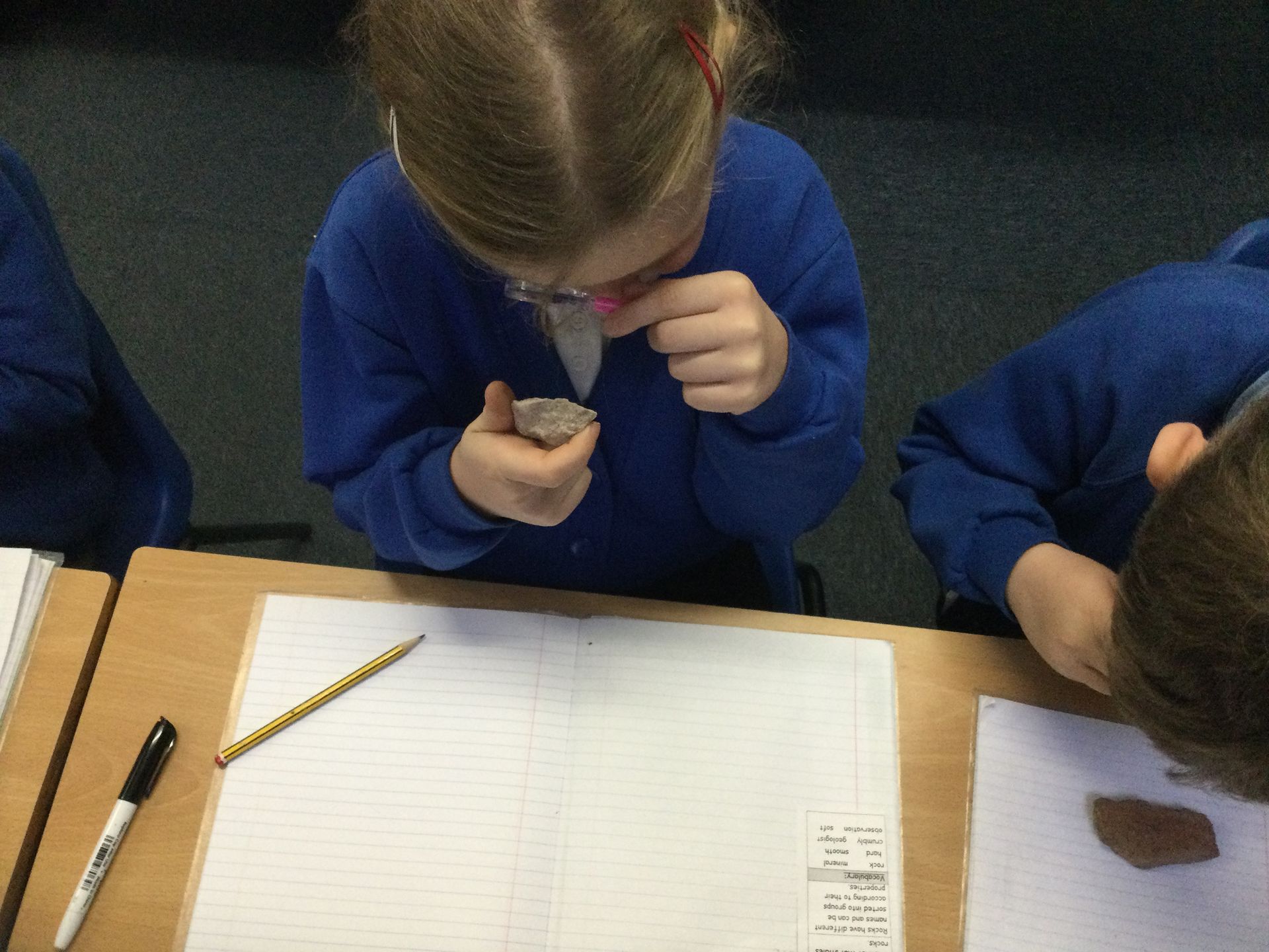 Our Science focus this term is rocks! We learned about scientists who study rocks and discovered they are called geologists . We then used our geology skills to observe, compare, and describe different types of rocks.